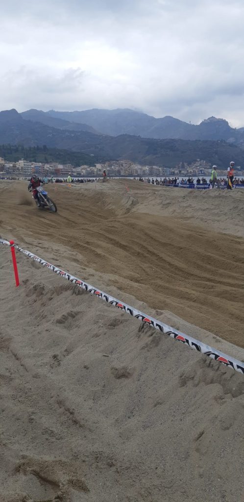 Ormai orfani dei due specialisti sabbiaioli abbiamo comunque preso il via all’ultima tappa degli Internazionali d’Italia Supermarecross con Mirko Dal Bosco in MX2, alla prima esperienza su questo tipo di fondo, ed Alessandro Lentini che in MX1 è sceso in pista con la TM 300 2 tempi volando sulle dune ai piedi di Taormina.